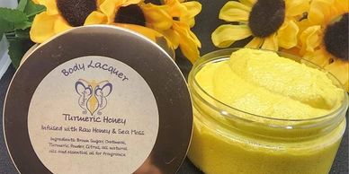 Revitalize your skin with the natural goodness of our Turmeric Honey Sugar Scrub. This invigorating scrub combines the powerful benefits of turmeric and honey with the gentle exfoliation of sugar to leave your skin feeling smooth, radiant, and refreshed.